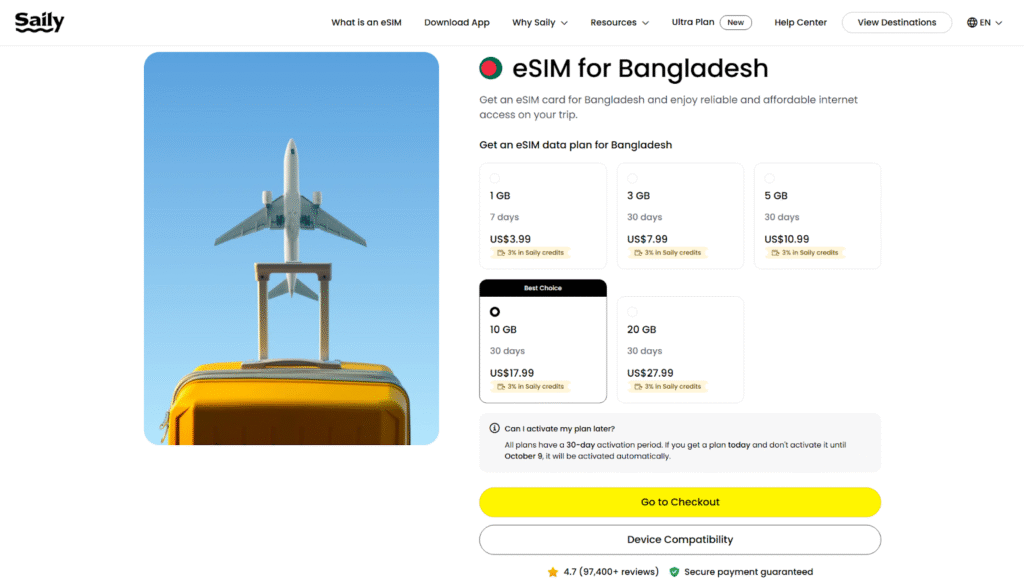 Saily eSIM plans for Bangladesh: