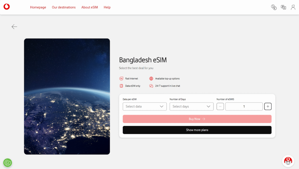 Vodafone Travel eSIM plans for Bangladesh: