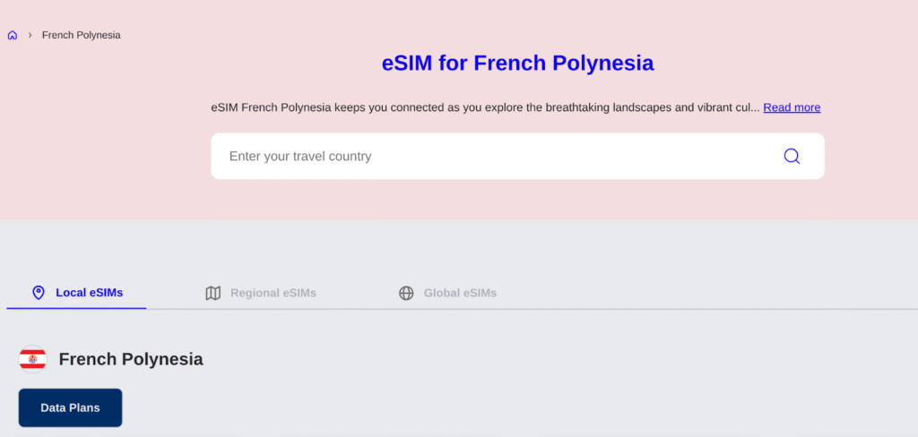 Yes, but only through Airalo’s Discover Global eSIM, not a dedicated French Polynesia package. The Discover plan works in 137 countries (including French Polynesia) and comes with multiple tiers, such as 1 GB for 7 days ($9), or 20 GB for up to 365 days ($66).