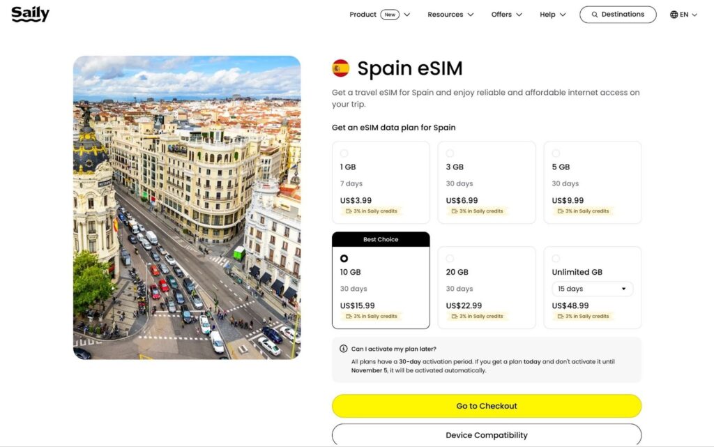 Saily is a smart choice for tourists who want affordable short-term data in Spain. Its flexible plans make it ideal for both casual and frequent travelers.