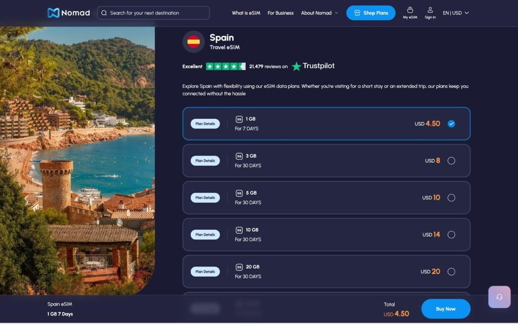 Use this table to compare each eSIM for Spain, including data plans, pricing, coverage, and key features. It helps you quickly find the best option for your trip based on your budget, data needs, and preferred level of connectivity.