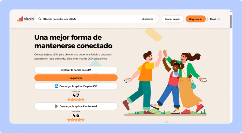 Planes eSIM locales, regionales y globales con amplia cobertura (más de 520 redes en todo el mundo) y opciones flexibles para distintos destinos. También ofrece planes de datos limitados.