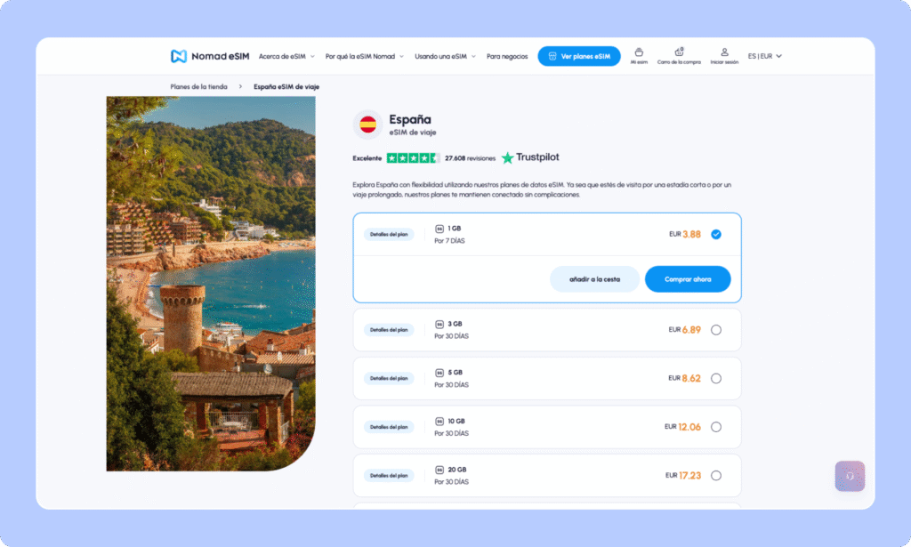 Nomad encaja bien si viajas por España y prefieres pagar por GB en lugar de datos ilimitados. Es una buena opción para viajes cortos o medios, o si sabes más o menos cuánto vas a consumir y no quieres pagar de más.