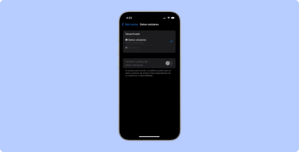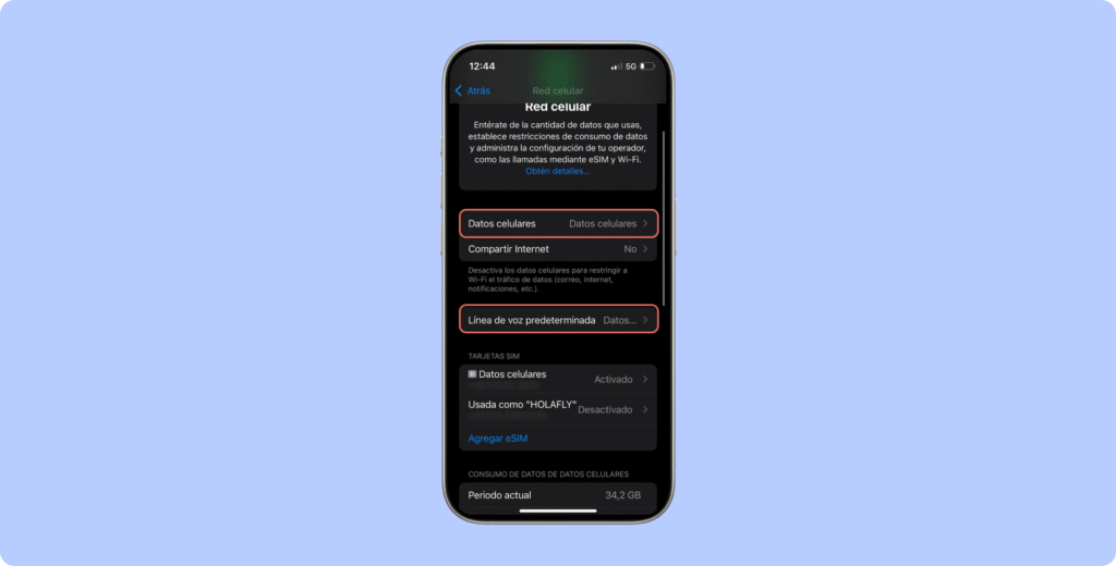Elige la eSIM como la línea dedicada para datos móviles.