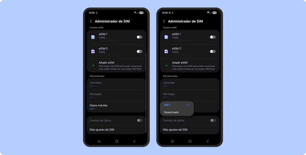 Para evitarlo, selecciona la eSIM que prefieras como línea de datos y desactiva los datos móviles en la SIM principal.
