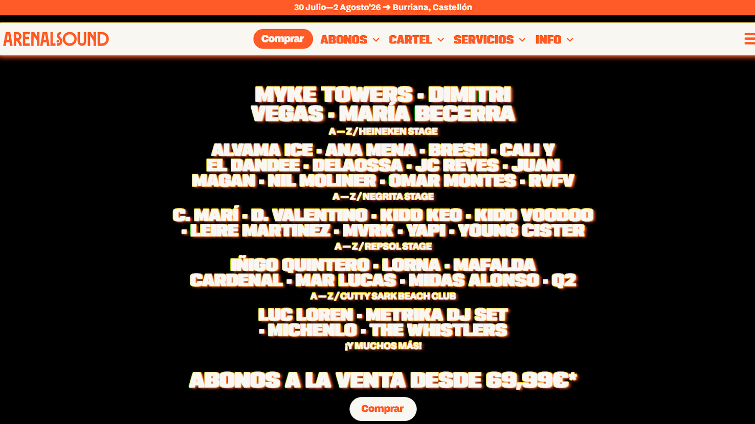 | Abono General | 69,99 € | Acceso a la mejor semana del verano del 30 de julio al 2 de agosto de 2026 | Hasta el 31/12 o fin de existencias |