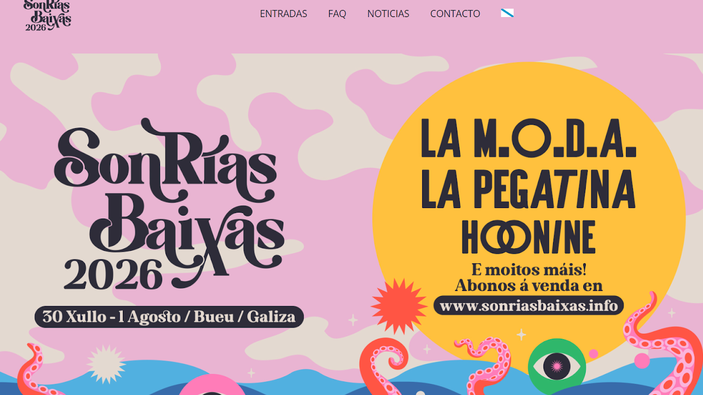 | 30 y 31 de julio – 1 de agosto de 2026 | Festival SonRías Baixas 2026 | Recinto de As Lagoas, Bueu, Galicia | Música alternativa, pop, rock, fusión |