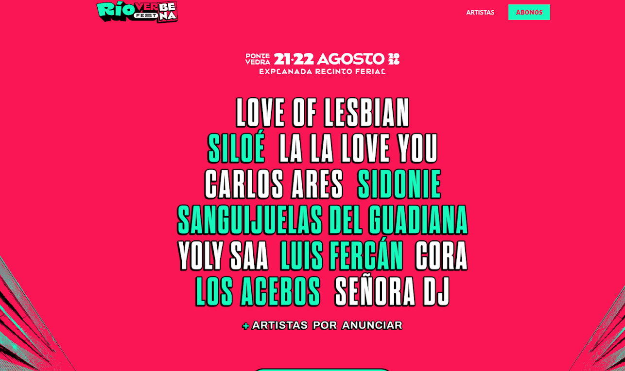 | 21 y 22 de agosto de 2026 | Río Verbena Fest 2026 | Valle de la Música, Arriondas – Cangas de Onís, Asturias | Electrónica, techno, techno-house, música de club |