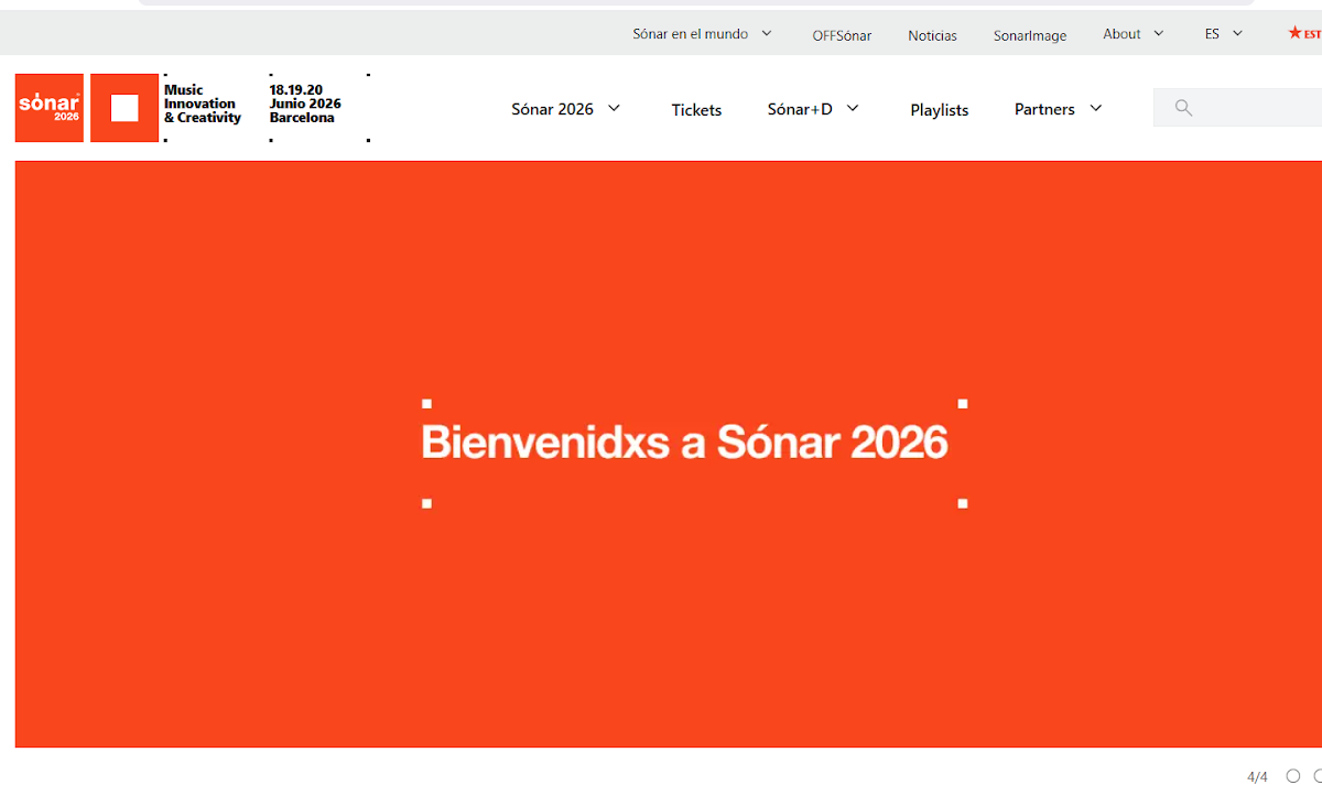 | 18, 19 y 20 de junio | Sónar Barcelona | Fira Gran Via, Barcelona | Techno, Electrónica, House, EDM, Drum & Bass, Bass, Experimental, Urbano, Hip-hop, Grime, Trap, Pop, Indie, Alternativo, R&B, Neo-clásico |