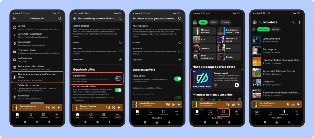 Una vez descargado, puedes activar el modo sin conexión desde la configuración de la aplicación, lo que te permitirá acceder únicamente a la música descargada sin necesidad de conexión a internet.