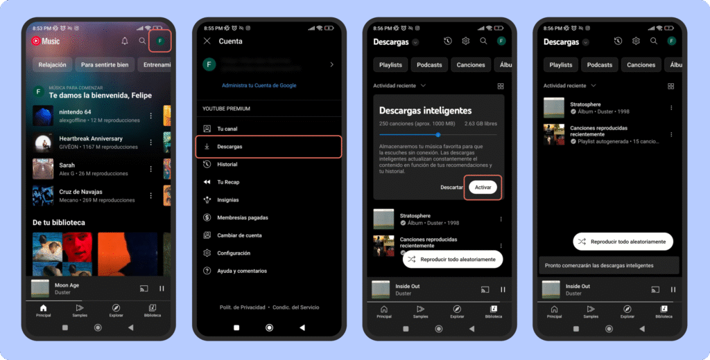 Método automático o Descarga Inteligente en Youtube Music