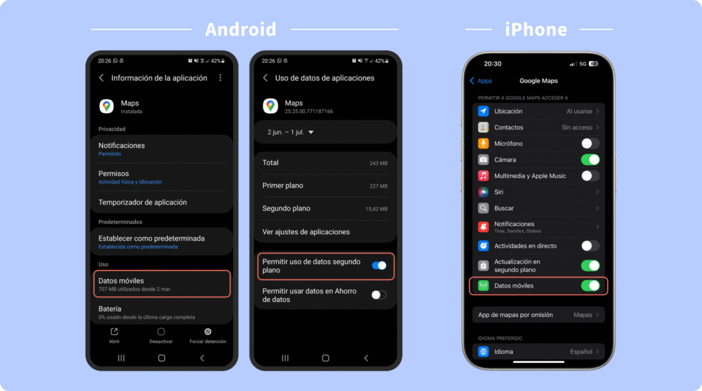 Imagen: muestra cómo reducir el consumo de datos de Google Maps en Android e iOS.