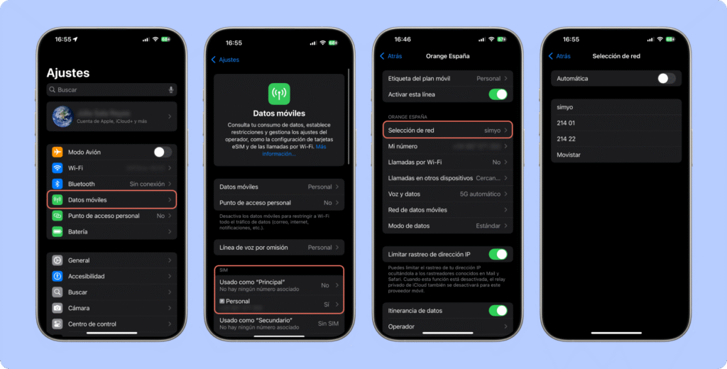 Ajustes → Red móvil → SIMs → Desactiva Seleccionar redes automáticamente → Elige una red disponible. ¡Listo!
