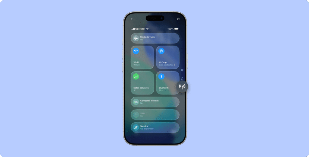 Las funciones satelitales no se muestran como un botón fijo. Solo aparecen cuando el tu iPhone es compatible, el sistema está actualizado y no hay cobertura móvil ni Wi-Fi. Si tienes señal, la opción no se activa.