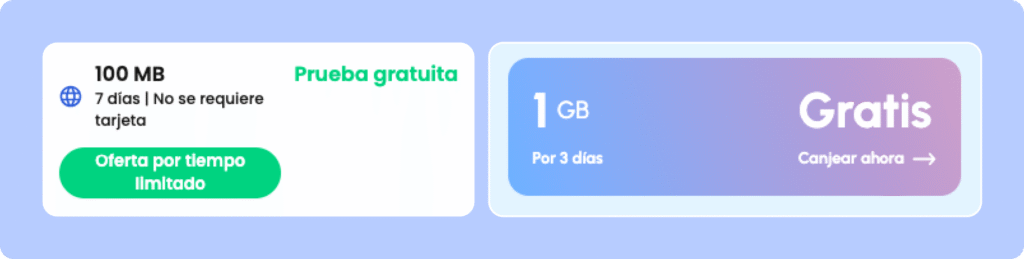 Existen pruebas temporales de eSIM gratuitas con datos limitados, pero no eSIM ilimitadas gratis de forma permanente.