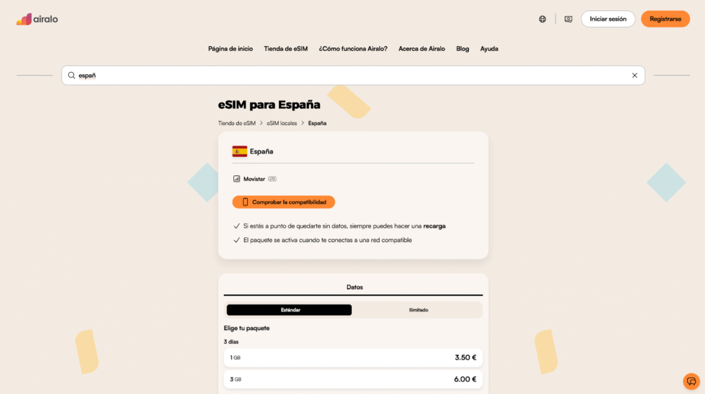 La SIM tradicional puede salir rentable en estancias largas, pero implica buscar tienda, presentar pasaporte y cambiar físicamente tu tarjeta. En mi experiencia viajando por España, hoy la opción más cómoda es la eSIM: la activas antes de salir o en el aeropuerto y en minutos tienes datos funcionando.