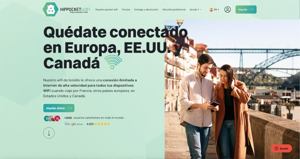 Hippocket WiFi es un proveedor europeo que alquila pocket wifi para España y el resto de Europa. Ofrece dispositivos 4G y 5G, con varias modalidades (1 GB/día o ilimitado). Es una opción pensada para viajeros que quieren compartir conexión entre varios dispositivos sin cambiar la SIM del móvil.