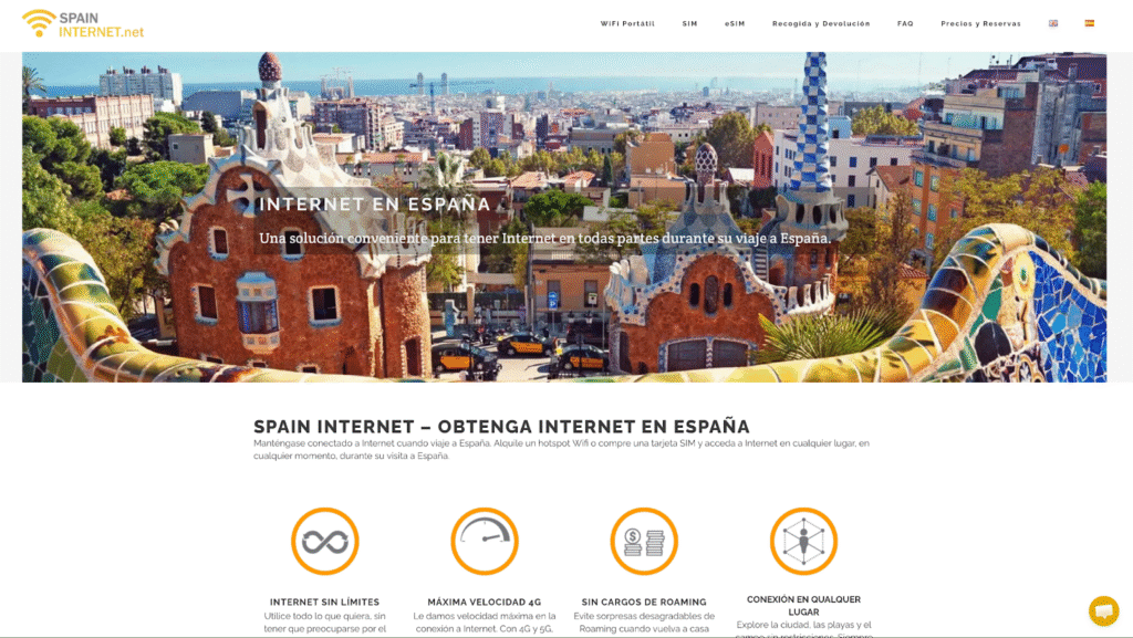 SpainInternet está muy orientado a viajeros que llegan a España y quieren tener conexión nada más aterrizar. Es un modelo clásico de alquiler de pocket wifi con recogida en aeropuerto o envío al hotel.