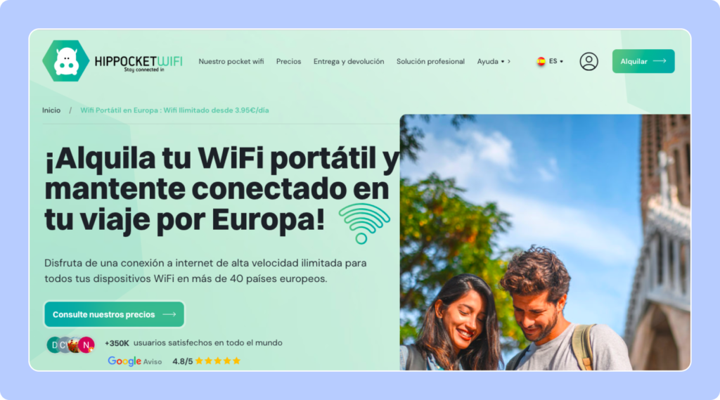 Sí, hay varios proveedores que alquilan pocket wifi en Europa, como MioWiFi, TravelWiFi, My Webspot o HippocketWifi.