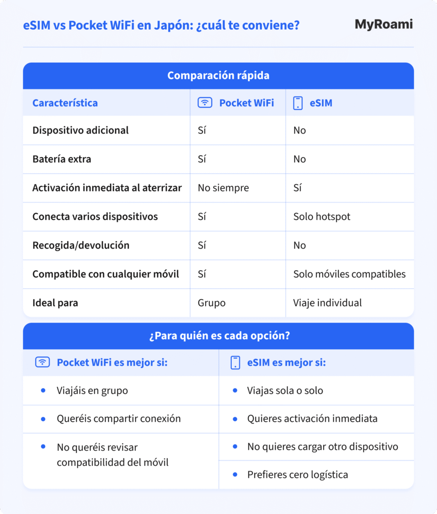 Muchos viajeros terminan buscando alternativas al pocket wifi Japón por tres razones muy simples: