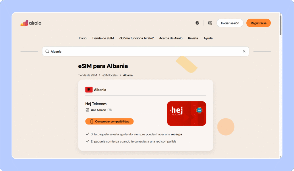 Airalo es recomendable si buscas una eSIM barata y fácil de usar para Albania y no necesitas grandes cantidades de datos ni extras avanzados como VPN o atención en español.