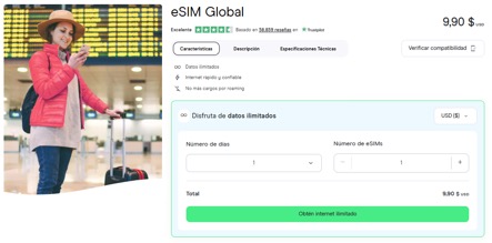 Ten en cuenta que los precios más económicos suelen ser de planes limitados. Las opciones con datos ilimitados o con apps en español y soporte 24/7 (como Holafly) suelen tener un costo más elevado, pero ofrecen mayor comodidad y tranquilidad al viajar.