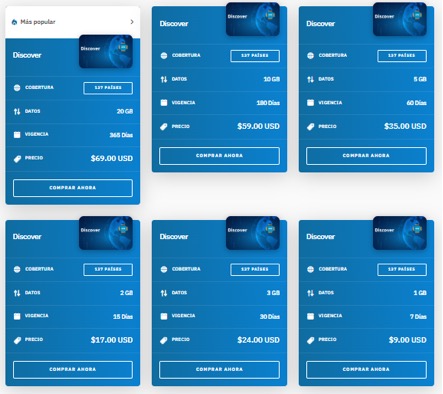 | 3 días | $25.90 | Datos ilimitados |