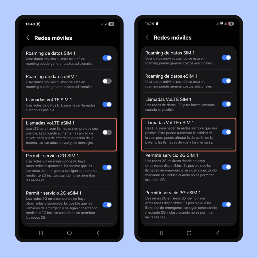 Dado que la instalación había sido exitosa y que me encuentro en la capital de Chile, me limité a asegurarme que mis datos móviles y roaming estuvieran activos y que el móvil no estuviera en modo avión