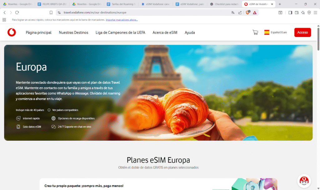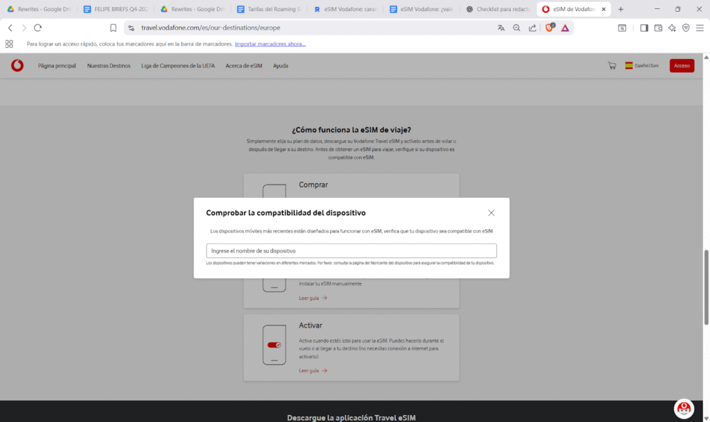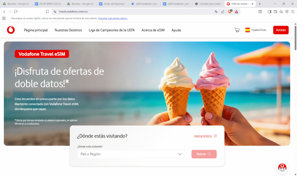 Comprar la Vodafone Travel eSIM es un proceso 100% digital y rápido, pensado para viajeros que necesitan datos móviles sin depender del roaming tradicional. No requiere ser cliente Vodafone ni visitar una tienda física.