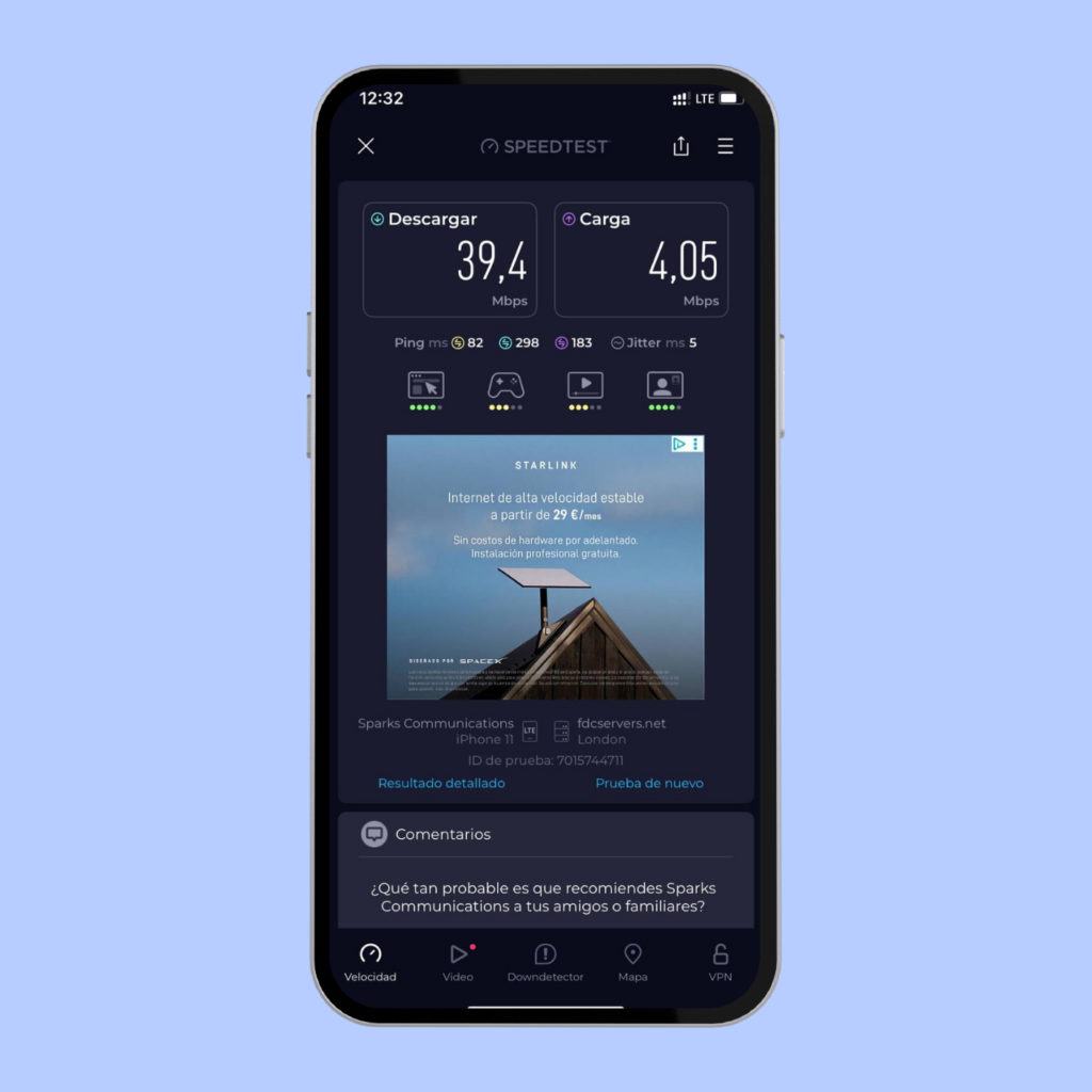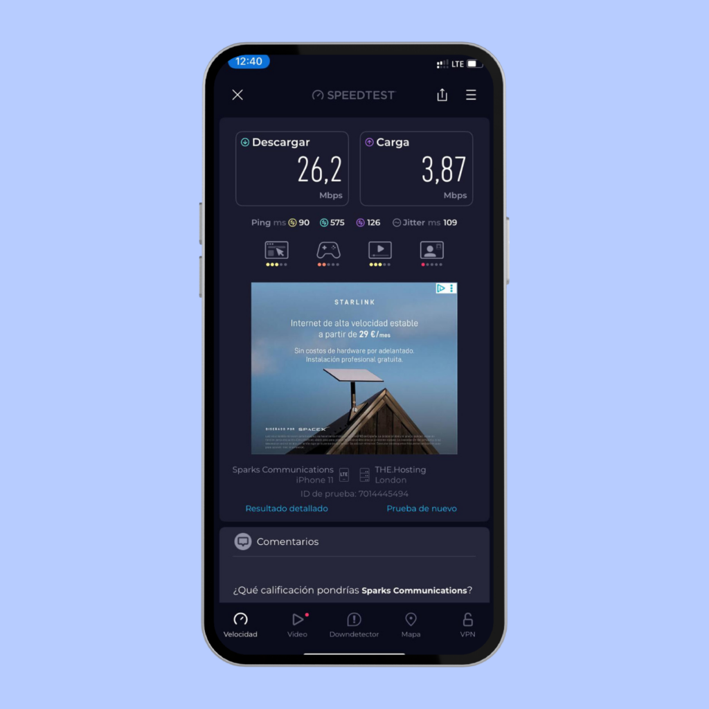 Con una velocidad de 102 Mbps en el móvil puedes navegar con normalidad, usar Google Maps, mensajería y hacer videollamadas. Es una buena velocidad para el uso diario del smartphone.