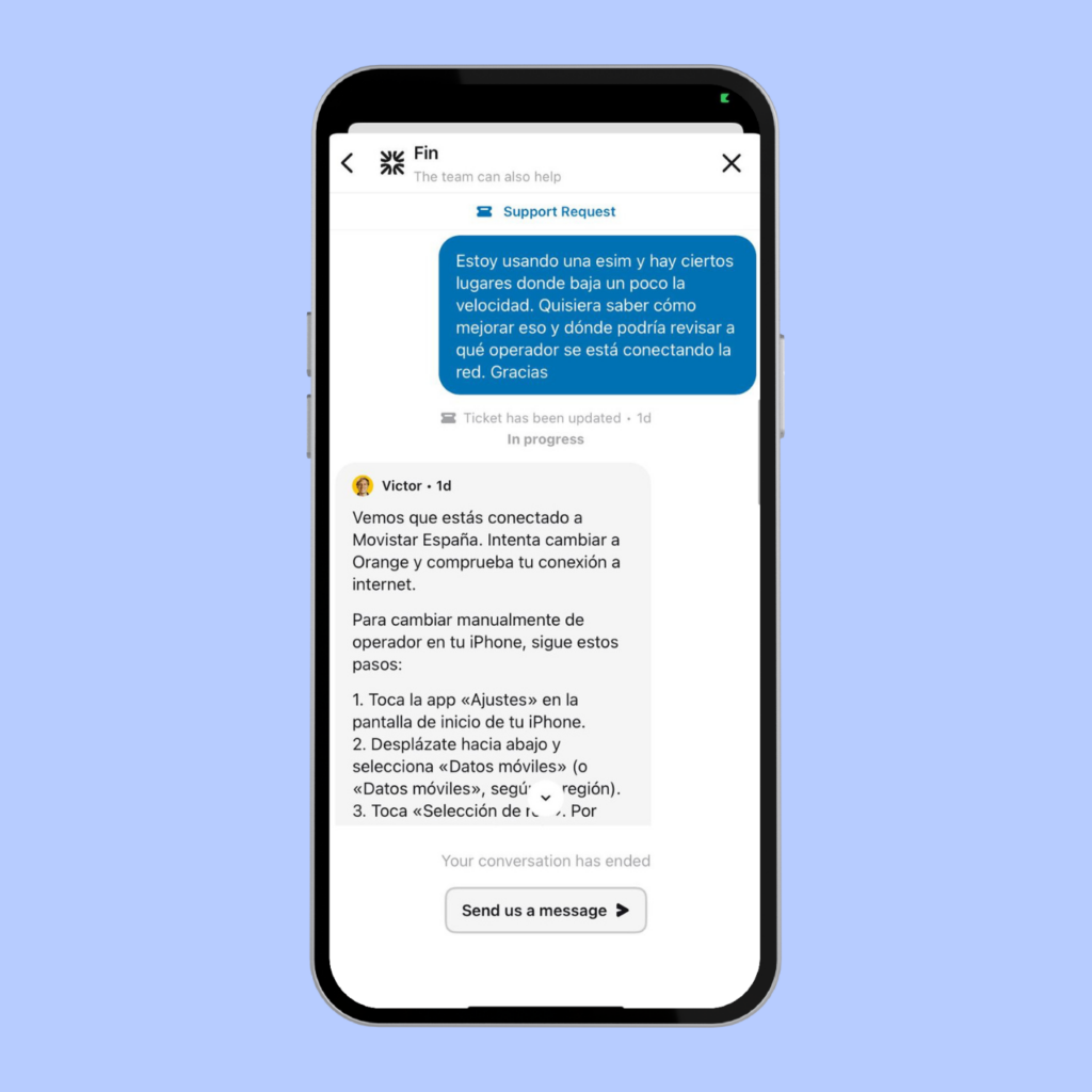 Sí, me enviaron dos documentos pdf de instrucciones para poder cambiar el operador que estaba usando y probar la velocidad nuevamente.