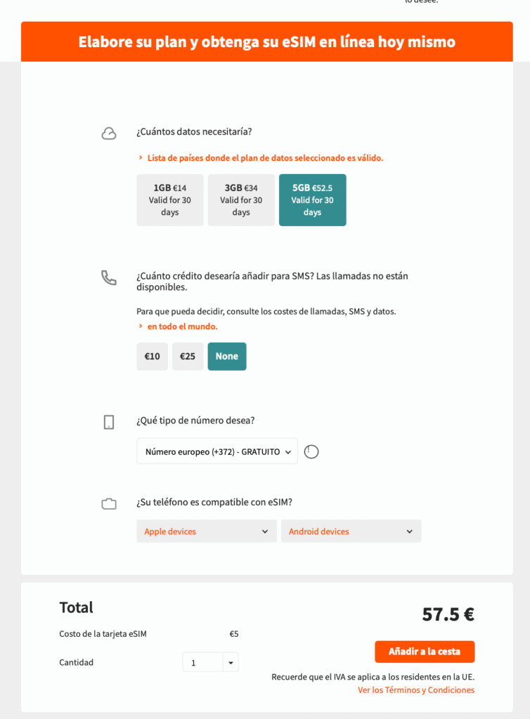 Precio total con eSIM: 57,5€