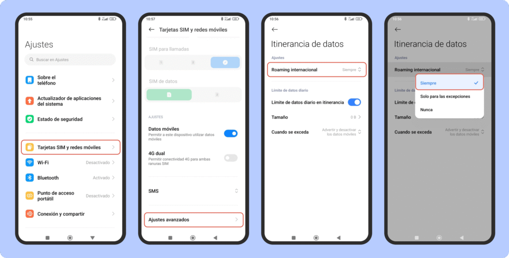 Luego, como siempre, es importante activar (o desactivar) la itinerancia de datos. Aquà una breve guÃa ilustrada para activar el roaming.