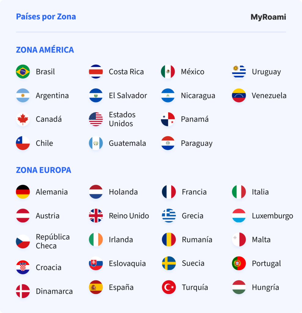 Los países por zona son los que se ven en el infográfico: