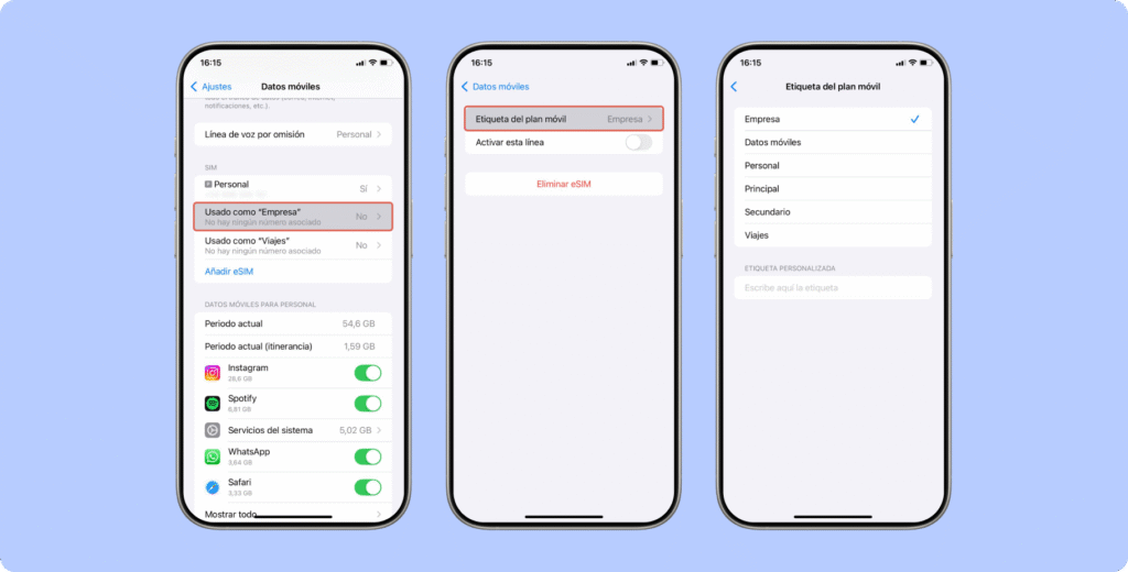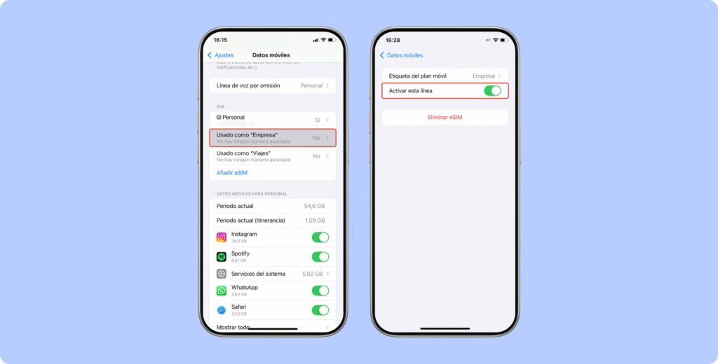 Con esto, los datos siempre se consumen desde la eSIM y evito cargos sorpresa.