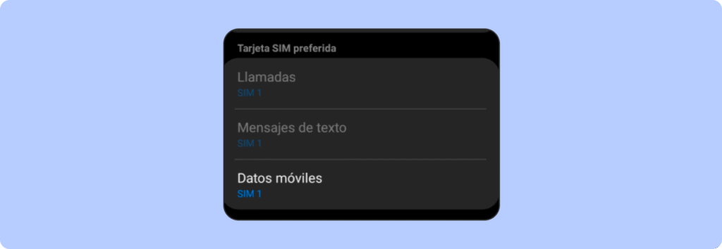 Comprueba que tu SIM principal esté activa, con cobertura, y que no esté deshabilitada desde los ajustes del sistema.