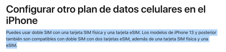 | Dual SIM con 2 SIM físicas | • Dos tarjetas SIM tradicionales en el mismo móvil. • Permite usar dos números en un solo dispositivo. | iPhone: solo en China, Hong Kong y Macao. Android: modelos con bandeja SIM doble. | Cada vez menos común en móviles recientes. |
