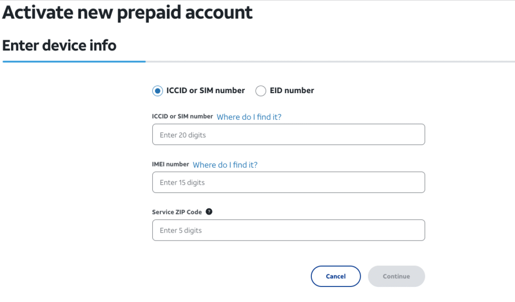1.Ve a att.com/activations, en AT&T PREPAID selecciona Activar tu dispositivo.