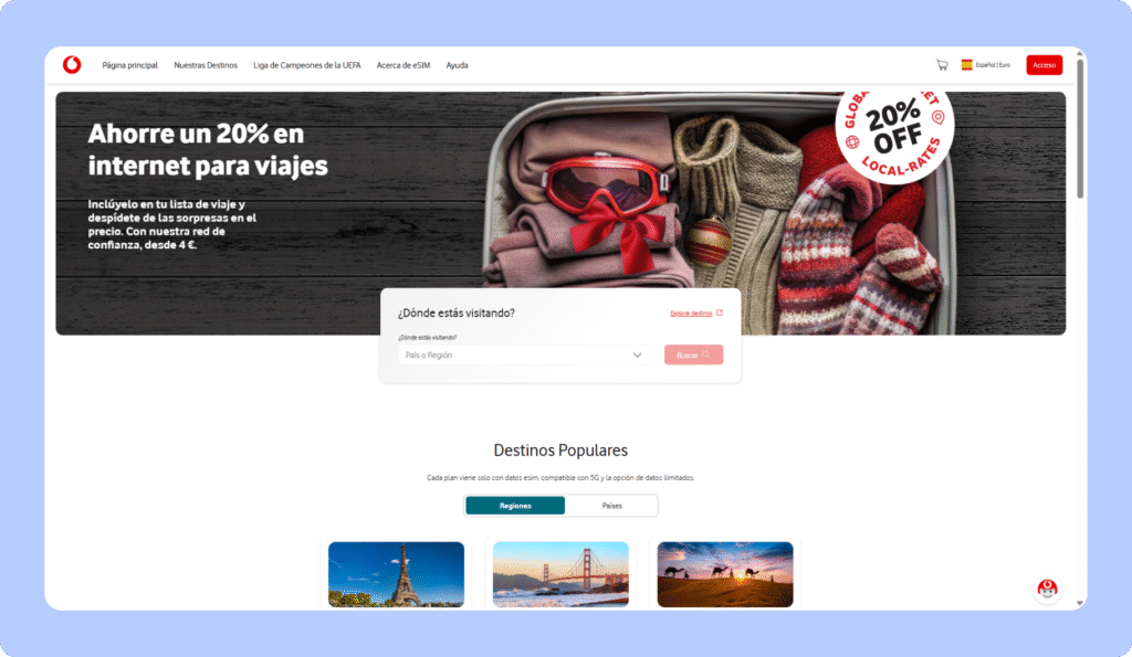 Vodafone Travel SIM es una eSIM internacional pensada para viajeros que necesitan conectividad básica en el extranjero sin depender de eSIM.