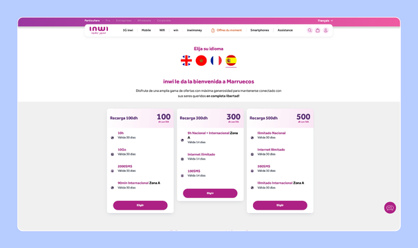 Las recargas son muy fáciles: se pueden hacer en tiendas, con tarjetas de rascar, desde la app “My Inwi” o incluso online.