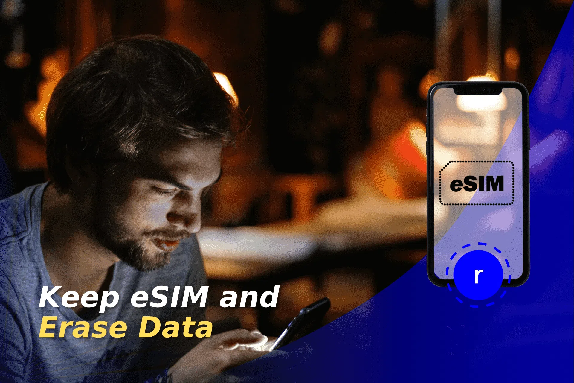 "Keep eSIM and Erase Data" is the choice you have to leave your eSIM profile intact during a factory reset or device wiping of all other data and settings. You ought to back up your device first before going into settings and initiating a factory reset, and ensure that you select "Keep eSIM" if prompted during the process.