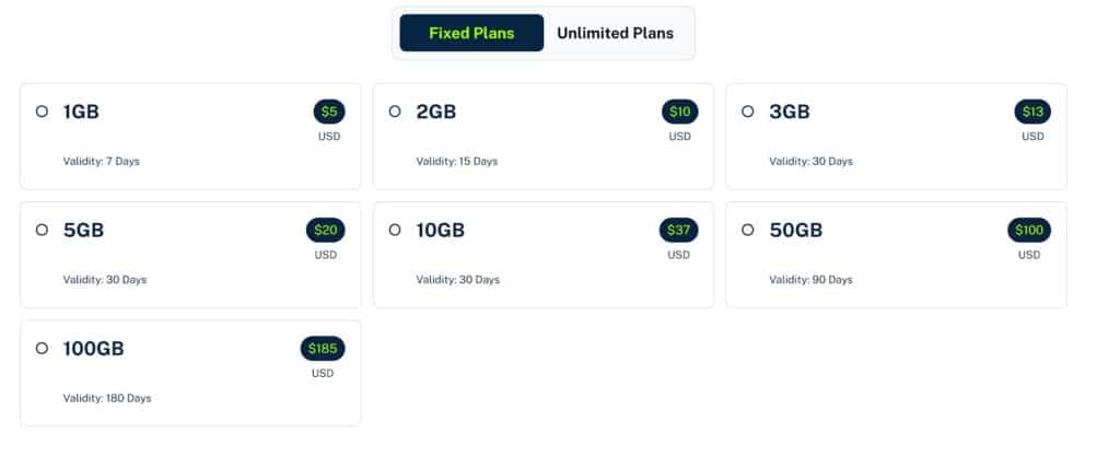 Estimez vos besoins en données – les forfaits illimités sont idéaux pour les gros utilisateurs, tandis que les petits forfaits conviennent à une navigation légère.
