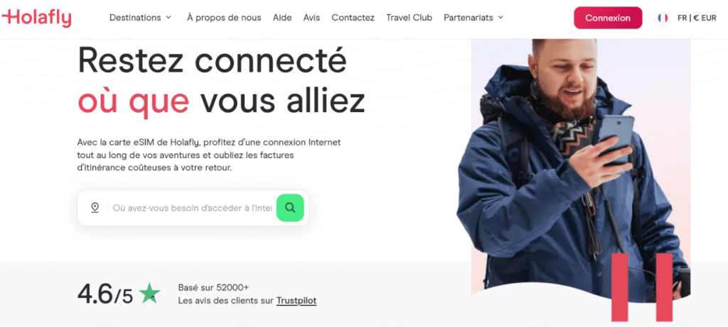 Holafly, basé en Espagne, est reconnu pour son focus exceptionnel sur les forfaits eSIM adaptés aux voyageurs. Couvrant plus de 160 pays, il propose des options de données illimitées, un support client fiable et une activation facile. Avec un support 24/7 et une configuration simple, il est parfait pour les voyageurs recherchant une solution eSIM fluide et fiable sans frais cachés.