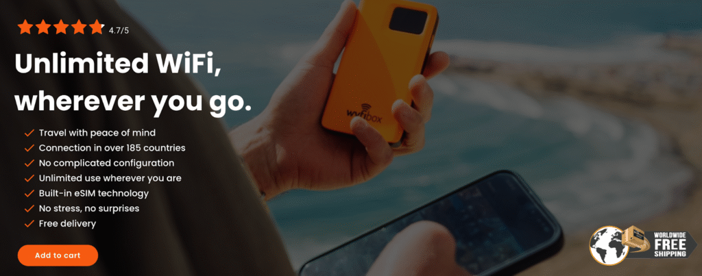 Wifivox is a European-focused provider that covers Portugal with unlimited 4G data. The daily rate is around €10/day, with discounts available for weekly and monthly rentals.