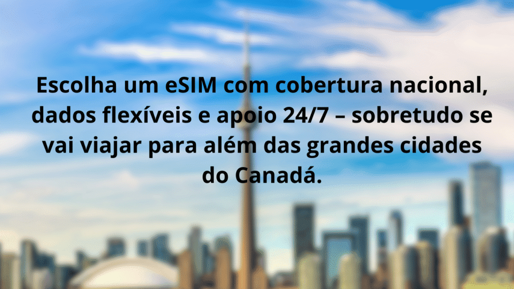 Quer esteja a explorar as Montanhas Rochosas, a passear pelas ruas de Toronto ou a visitar amigos em Vancouver, um eSIM permite-lhe aceder à internet instantaneamente — sem quiosques, sem esperas e sem taxas de roaming.