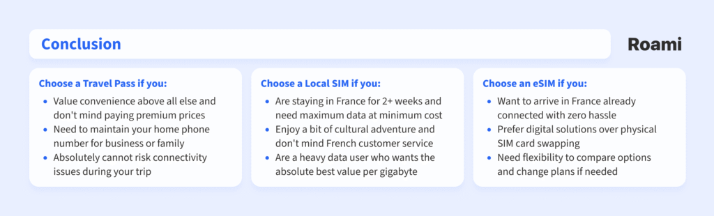 After diving deep into France's connectivity landscape, the choice really comes down to your travel style, budget, and data needs. There's no universally "right" answer, but there's definitely a right answer for you.