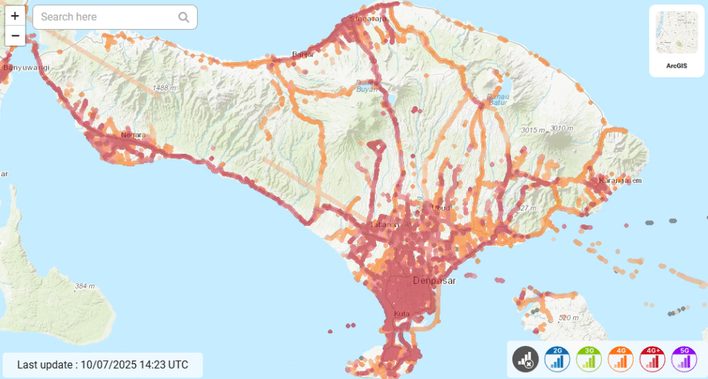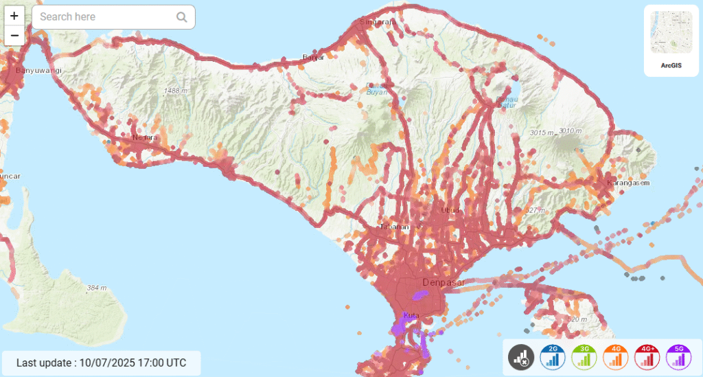 IM3 network coverage map in Bali. Source: nperf.com