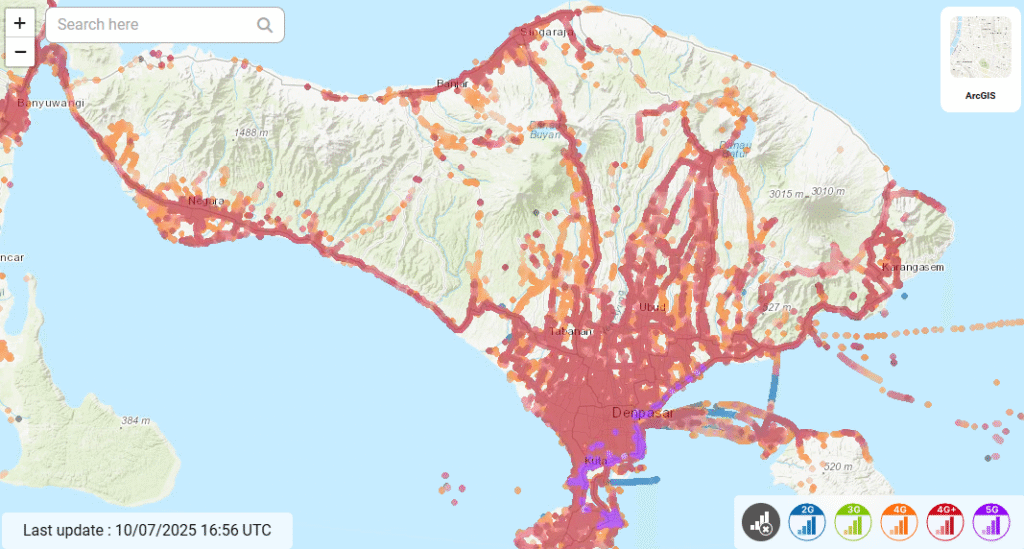 Smartfren network coverage map in Bali. Source: nperf.com