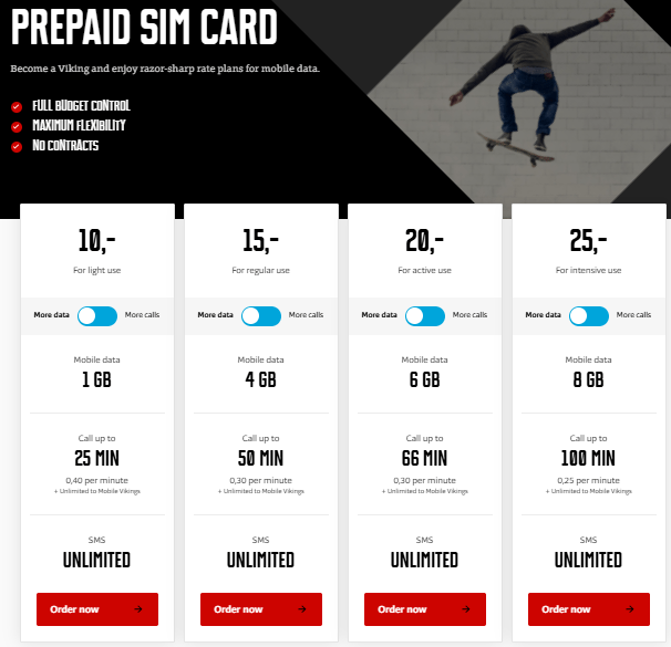 | €20.00 | 6GB | 66 minutes (unlimited to Mobile Vikings) | Unlimited |