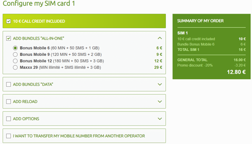 | €15.99 | 12GB | 30 minutes (unlimited from Belgium to Belgium) | 200 |